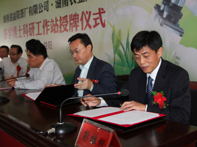 2015年10月22日,湖南農(nóng)業(yè)大學(xué)茶學(xué)博士科研工作站授牌儀式在湖南省益陽茶廠有限公司隆重舉行。
